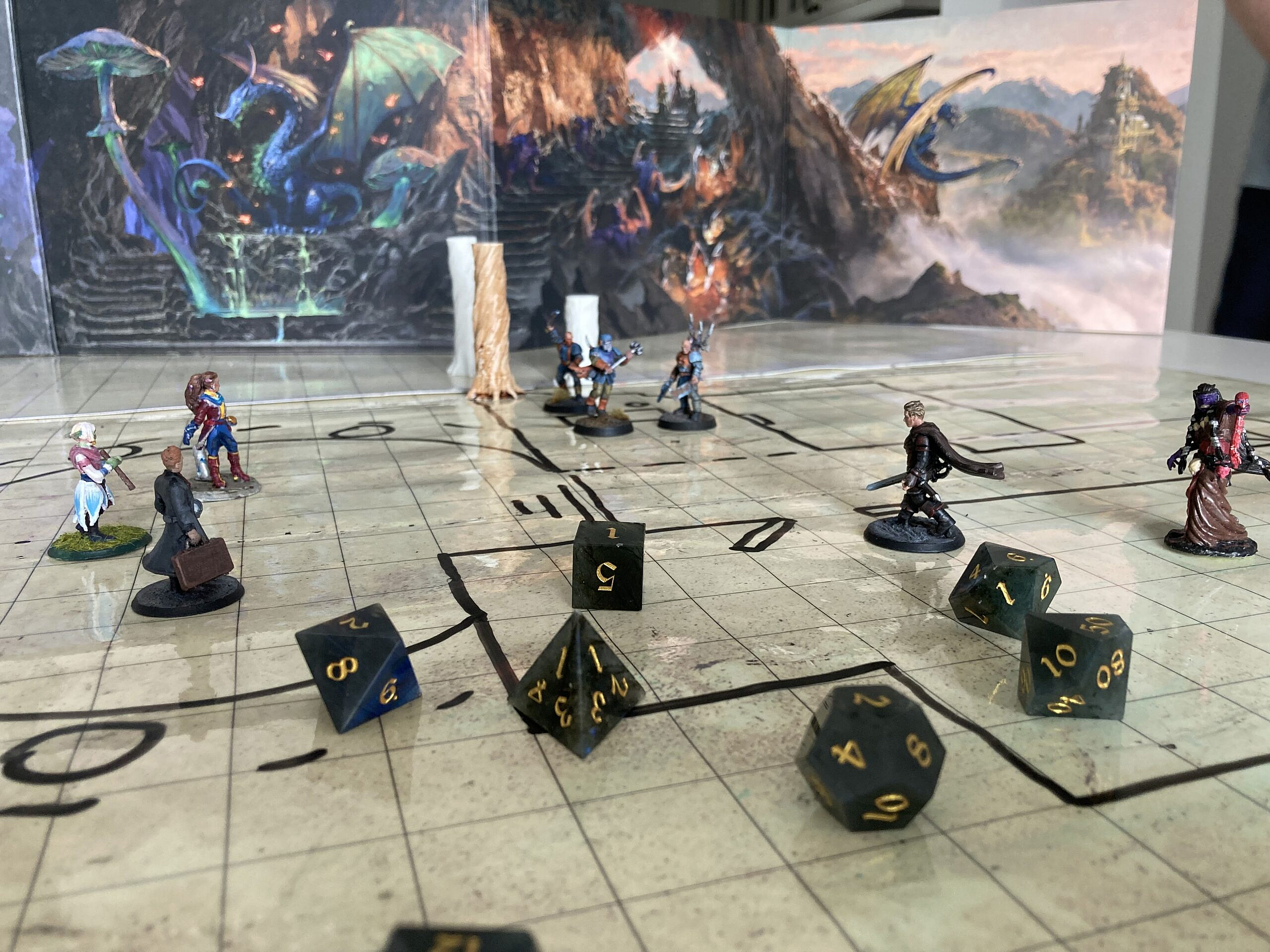 My d20, d12 and especially d6 have this blue opal hue coming out of the surfaces which makes them absolute treasure. These are for sure my best looking set I’ve had so far and I’m currently browsing for another set – this frosted obsidian looks dope!